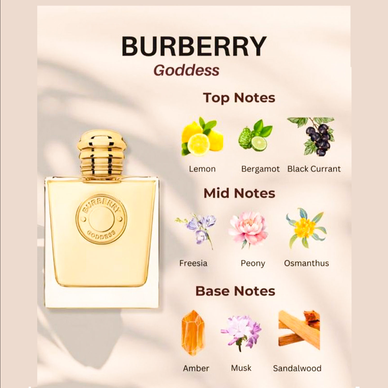 - Burberry Goddess Eau de Parfum – 100 ml A radiant vanilla‑forward scent that awakens confidence and charm